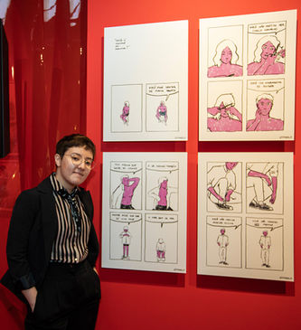 Also in 2019, Tomboy was selected for the Diversa exhibition at the Museum of Sexual Diversity of São Paulo, where enlarged illustrations were displayed as part of a comic art installation.
